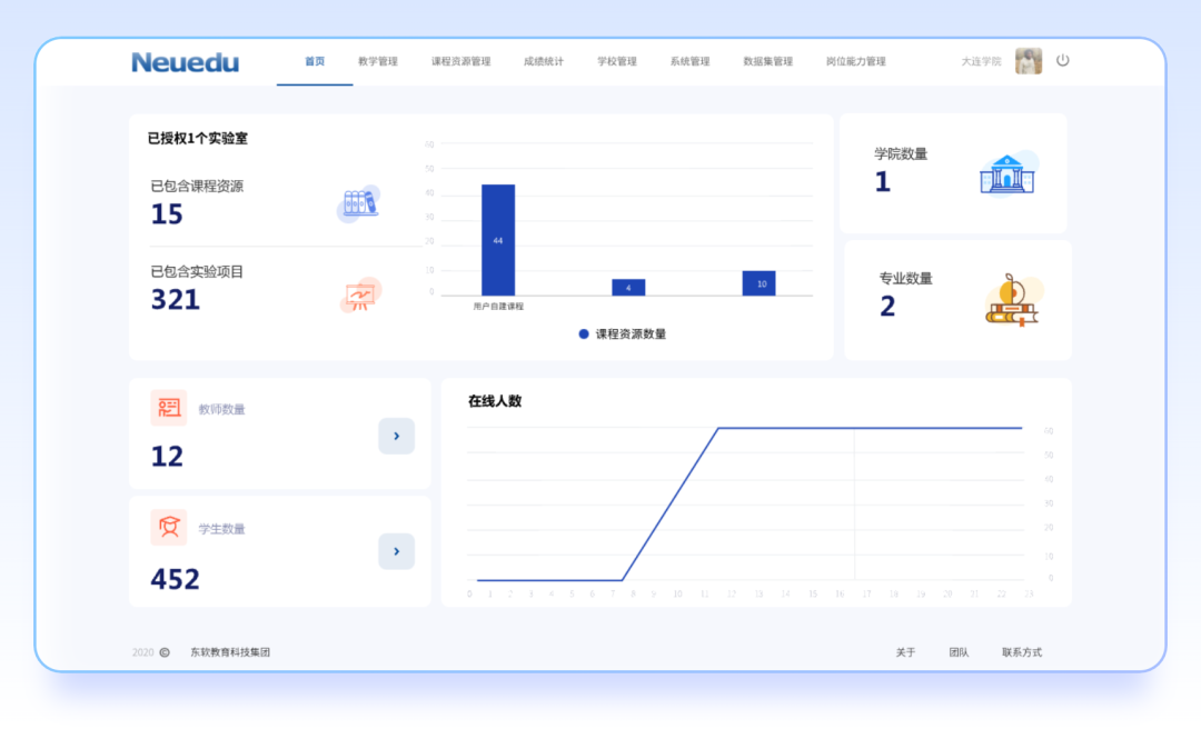 针对教学过程中的过程埋点记录、结果数据分析、学习行为数据、实训过程数据、成绩数据等数据,进行实时统计,并顺利获得实训分层分数统计更细致化展现学生对技能点的掌握情况,从而更全面得呈现课程教学效果。