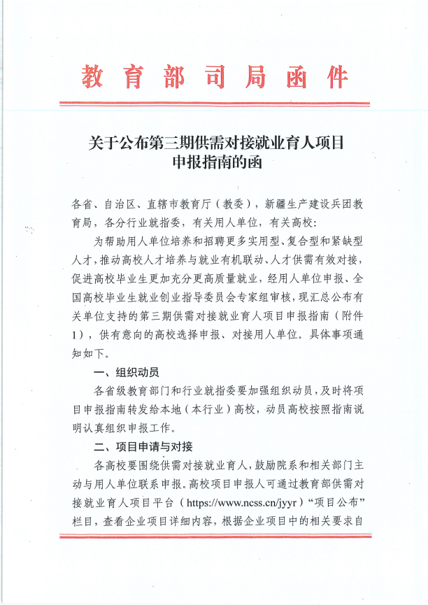 点击《关于公布第三期供需对接就业育人项目申报指南的函》网页底部附件链接,下载“第三期××公司供需对接就业育人项目申请书”。