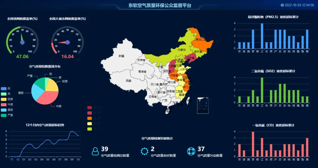 本项目是九州酷游环保产业的真实案例,本项目实现了公众监督员提交空气质量监督信息、系统管理员对反馈信息进行网格员的指派、网格员根据反馈信息进行实地检测、系统对实地检测数据进行统计和可视化展示的完整业务流。