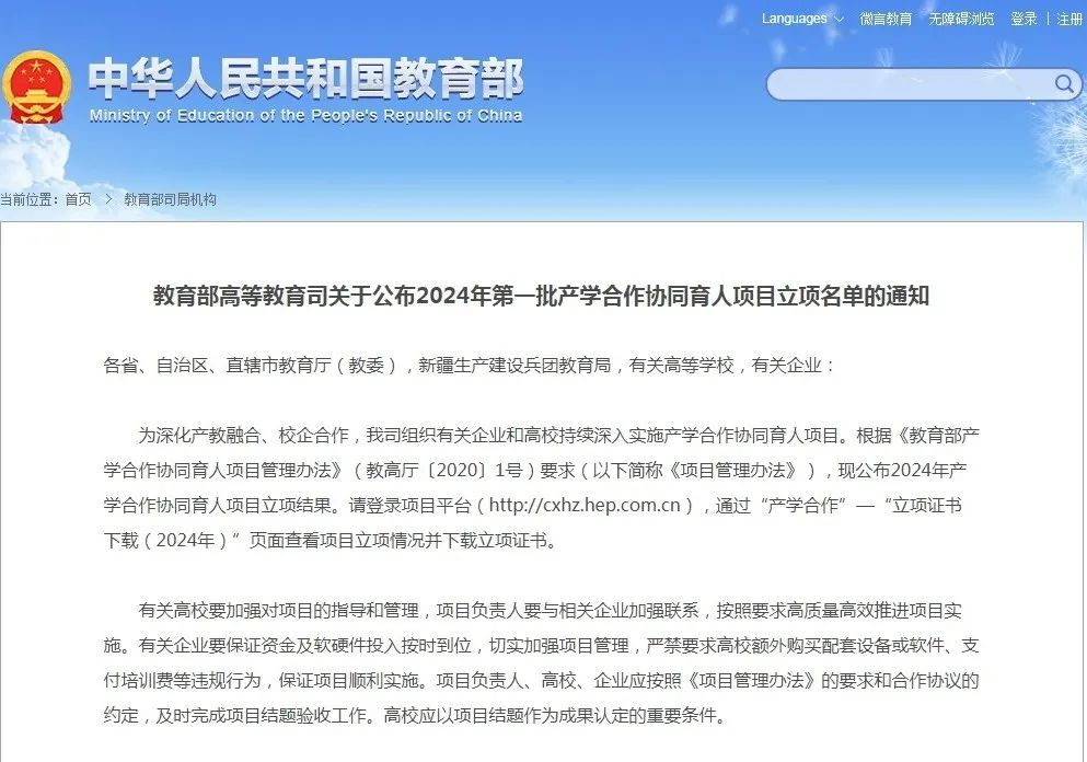 喜讯 | 51个教育部产学合作协同育人项目成功立项