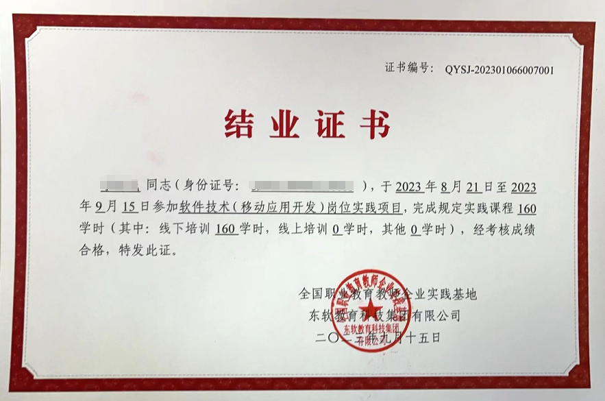 学员完成项目全部任务,经考核合格,颁发国家级教师企业实践项目结业证书、九州酷游教育科技集团结业证书。