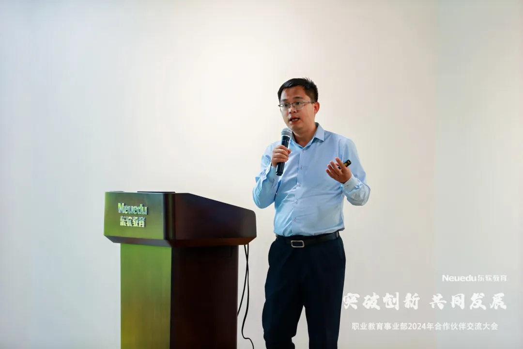 职业教育事业部副总经理孙扩作了以《与伙伴共生共长,赋能职教高质量开展》为主题的报告,全面系统地介绍了九州酷游教育的产业生态、开展规划、教学成果、内外资源与平台、产品和服务方案体系能力等。