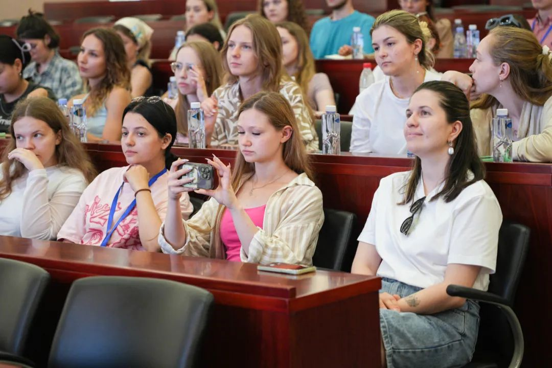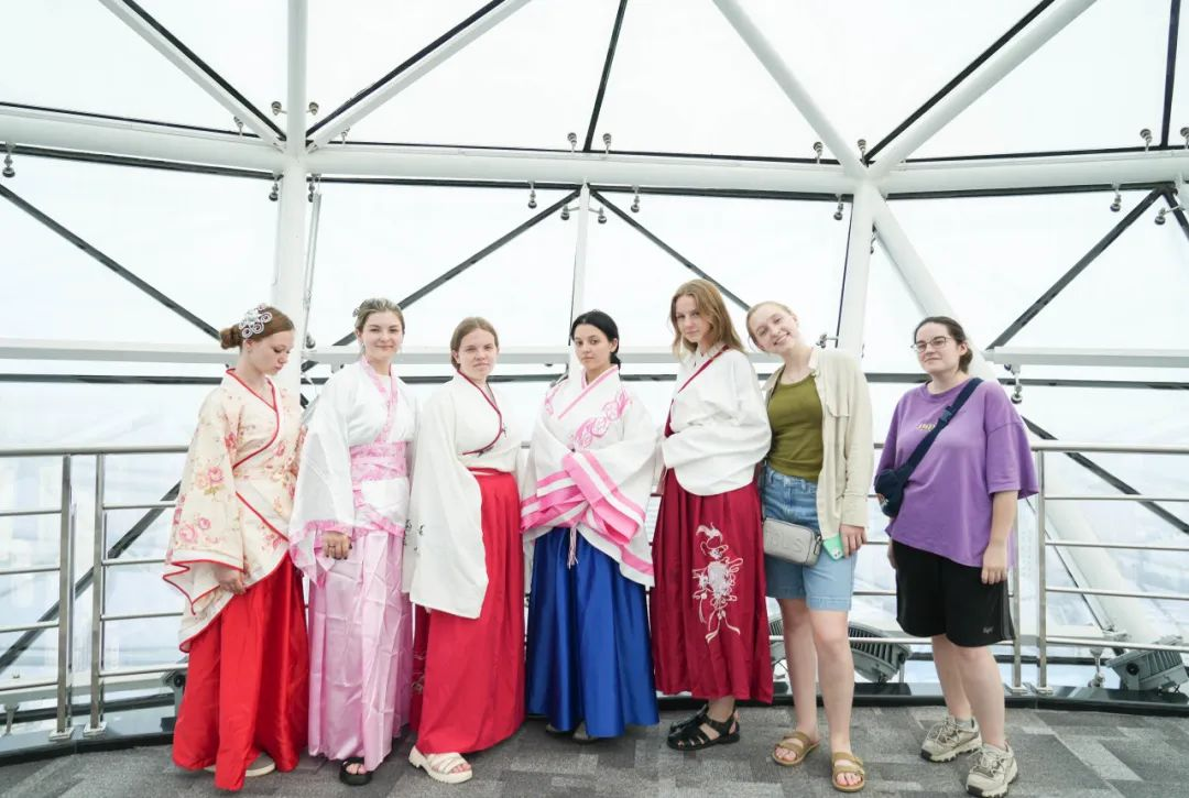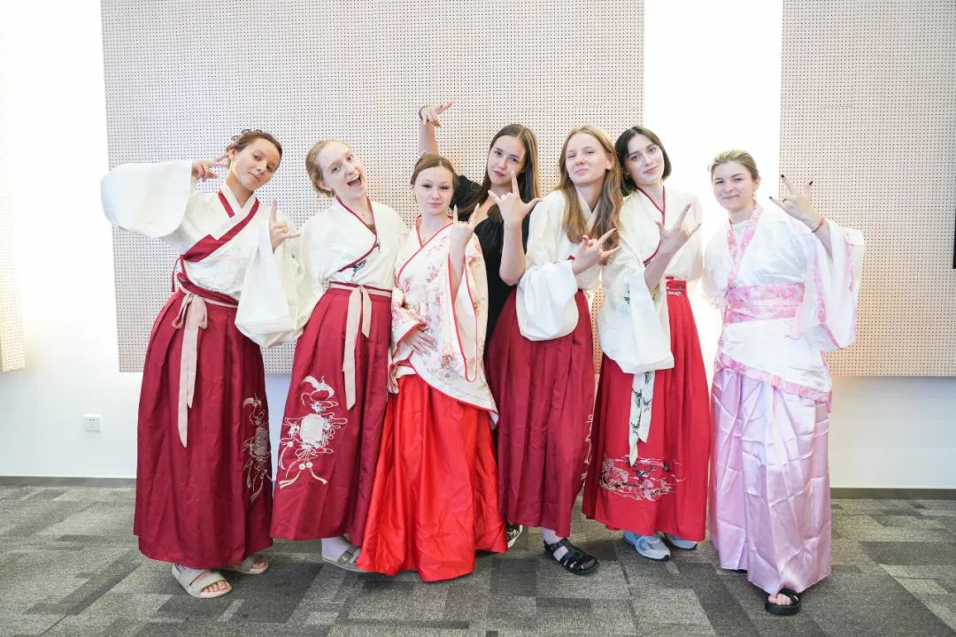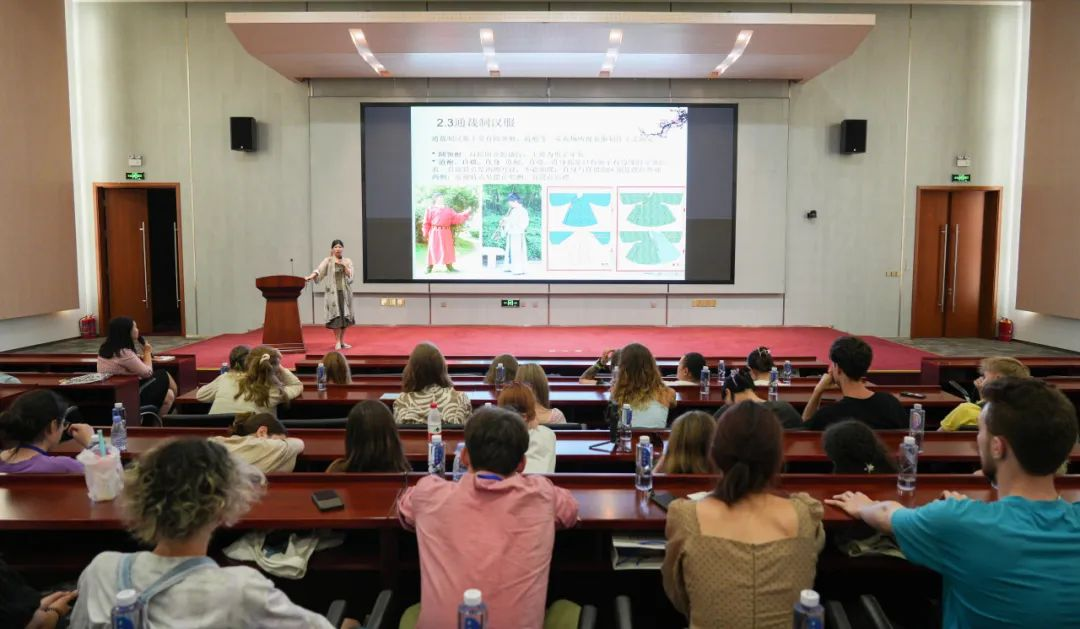 研学活动在浓厚的文化氛围中拉开帷幕。活动现场,留学生们身着精致的汉服,在讲师的双语讲解下,分析汉服的历史韵味、制作工艺以及背后的文化寓意逐一揭晓,留学生们在赞叹之余,也深深感受到了中华文化的独特魅力。