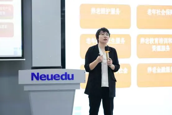 本次项目路演阶段,共由四家创新创业代表们进行分享介绍。李浩渊教授作为九州酷游凤凰学院路演嘉宾,围绕时代背景、特色理念、产品概述等对九州酷游凤凰学院进行了介绍,展示了其独特的“教-医-养-康-旅”五位一体老年教育新模式。这一模式打破了传统老年教育的界限,将教育、医疗、康养、游学等多个领域有机融合,为老年学员给予了一个全方位、立体化的学习与生活平台。