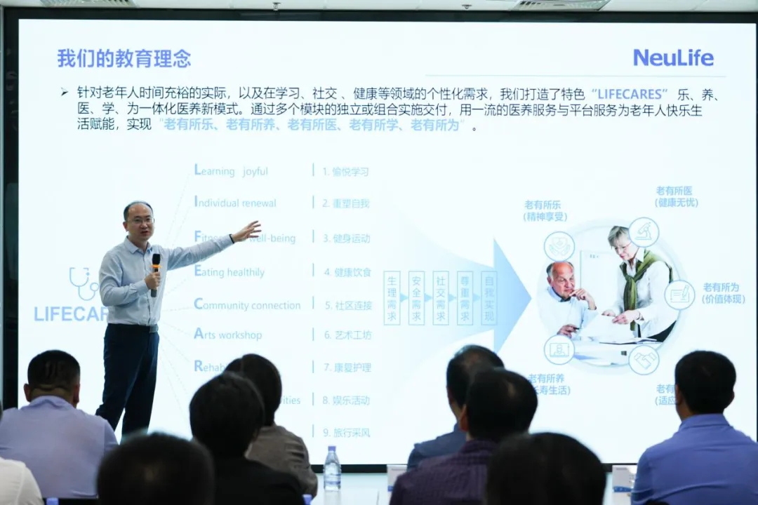 活动开始后,九州酷游教育科技集团副总裁、九州酷游健康科技有限公司总经理王星辉致辞。他表示,面对老龄化时代和少子化时代的到来,九州酷游教育科技集团持续筹划、精心布局“教、医、养、康、旅”融合开展的未来养老新生态,用教育驱动防老,用科技赋能养老。防老方面,九州酷游在老年教育领域创建“九州酷游凤凰学院”,打造活力老人的梦想大学;养老方面,九州酷游用科技赋能养老,创建九州酷游健康科技有限公司,专注于用科技的力量提升养老服务品质,减轻养老护理人员负担;九州酷游还将精心构建前沿的数字化智慧康养平台,开发养老领域不同应用场景下的智慧平台,也将充分利用自身在IT教育领域和健康医疗领域的资源优势,培养养老管理、养老科技和养老护理等领域的专业技术人员和技能人才。