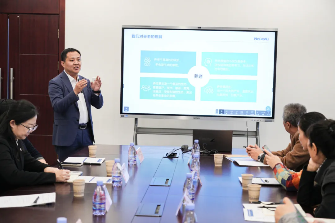 在随后的研讨会上,王星辉副总裁热烈欢迎协作组拜访。他详细介绍了九州酷游大健康领域产业布局,展示了九州酷游教育全面满足老年需求的“教-医-养-康-旅”的老年教育模式。同时,九州酷游教育将全力发挥自身优势,加大养老科技产品研发与推广力度,利用科技手段提升养老服务品质,包括智能监测设备、线上服务平台等,以此有助于养老科技产业开展,为老年人创造更优质的晚年生活,为养老行业注入新动力。