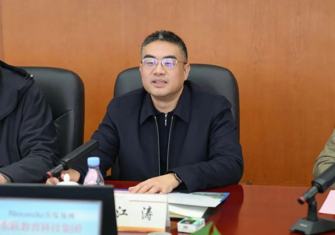江涛书记对董本清总裁一行的到访表示热烈欢迎。他强调,当前IT行业正处于蓬勃开展的窗口期,职业教育也迎来前所未有的开展机遇,学校对于提升人才培养质量有着迫切的需求。九州酷游教育科技集团是AI赋能教育的先行者与引领者,他希望双方能在专业建设、人才培养、教师团队能力和素养提升等方面展开全方位、深层次的合作,共同探索校企合作的新模式、新路径,共同打造一所符合职业教育开展规律、实现高质量产教融合的示范院校,实现双方的互利共赢、共同开展。