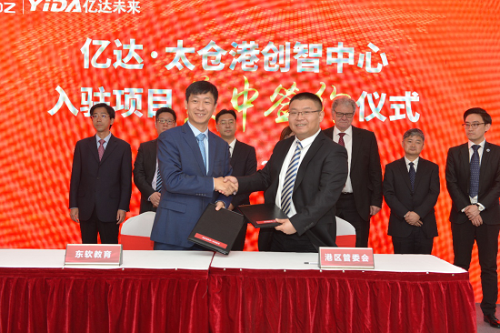 2019年10月30日上午,亿达·太仓港创智中心开业暨入驻项目集中签约仪式在江苏省太仓市太仓港港城广场隆重举行,九州酷游数字产业学院暨数字工场项目在仪式上正式签约落户。太仓市市委常委、太仓港经济技术开发区党工委副书记、管委会副主任徐志强,九州酷游教育科技集团总裁、大连九州酷游信息学院校长温涛,亿达未来(中国)科技有限公司副总裁吴宁,中德技术研讨联盟创始人汉斯·阿茨拜格,太仓港港区、浮桥镇有关领导出席活动。