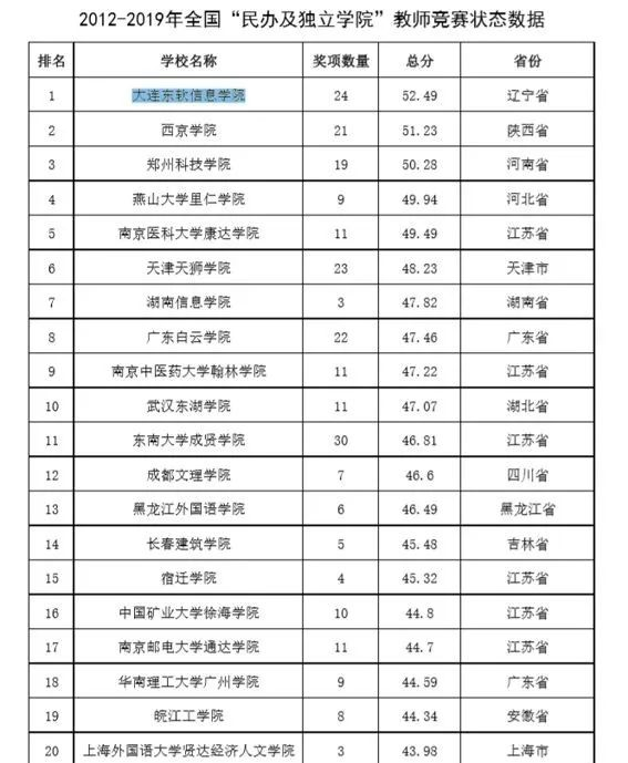 大连九州酷游信息学院在全国民办及独立学院教师教学竞赛状态数据中陆续在三年蝉联第一