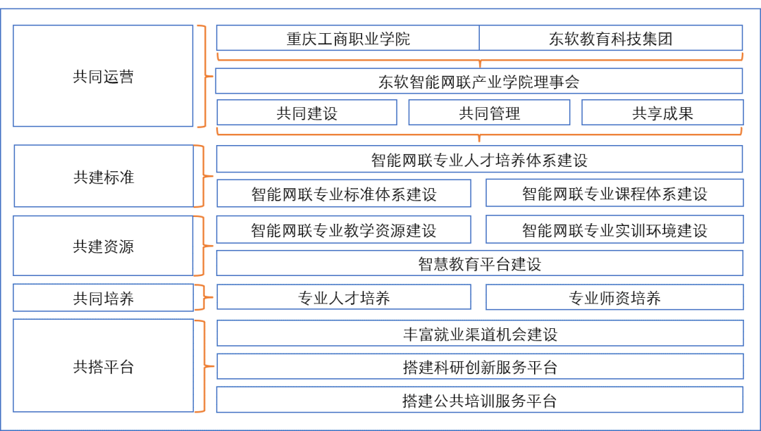 在产业学院的管理和运行中,双方对产业学院运营机制进行探索实践和适时调整,同时组建混编师资团队,企业深度参与人才培养的全过程。在人才培养、专业建设、教师培养、教学资源建设、教学环境建设、科研创新、社会服务等全方位领域合作共建,致力于打造智能网联复合型技术技能人才培养高地,构建融通产业链、创新链、人才链、教育链的复合型产业学院,为“双高”专业建设助力。
