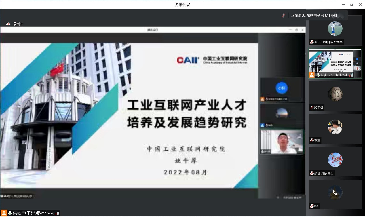 中国工业互联网研究院姚午厚线上作题为《工业互联网产业人才培养及开展趋势研究报告》的主旨报告
