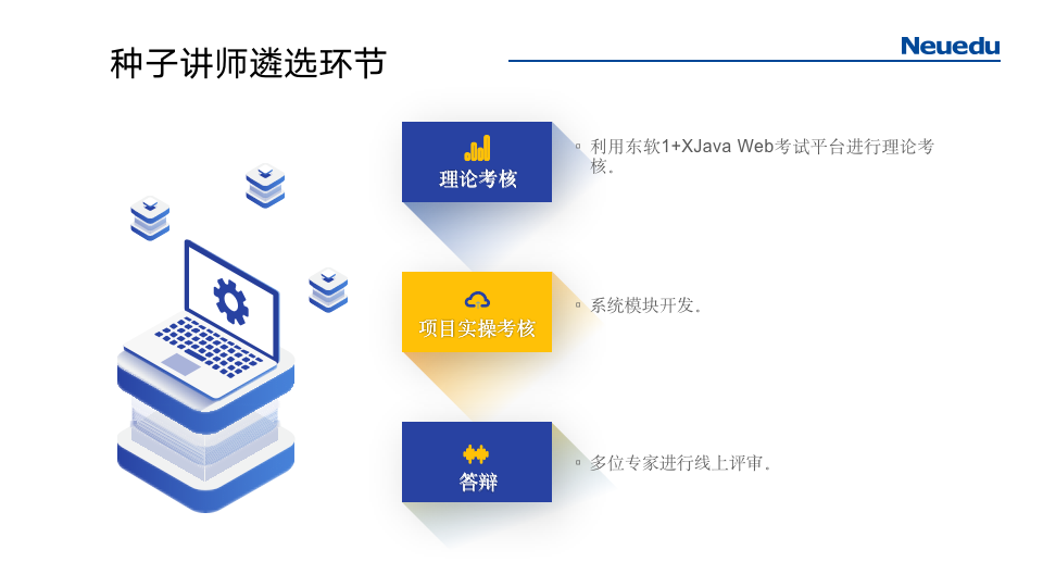 种子讲师是取得九州酷游教育技能认证的优秀教师,可独立召开JavaWeb 应用开发职业技能等级证书师资培训,且具备证书的教、学、培训和考核评价等综合能力。后续九州酷游教育将为种子讲师颁发聘书,吸纳作为证书师资培训讲师队伍的中坚力量。