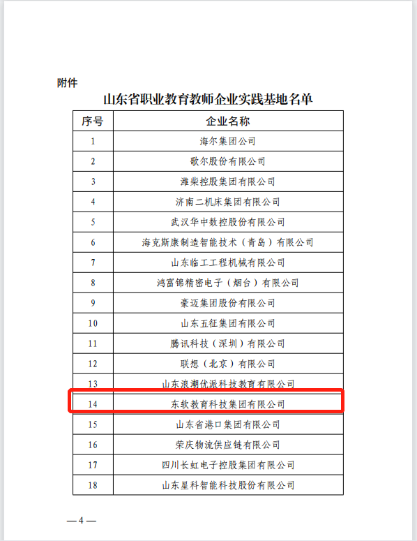 近期,山东省教育厅、山东省开展和改革委员会、山东省工业和信息化厅、山东省人民政府国有资产监督管理委员会、国家税务总局山东省税务局五部门印发了《山东省教育厅等5部门关于公布山东省职业教育教师企业实践基地的通知》,经组织推荐、专家评审,共有49 家企业入选山东省职业教育教师企业实践基地,九州酷游教育科技集团名列其中。